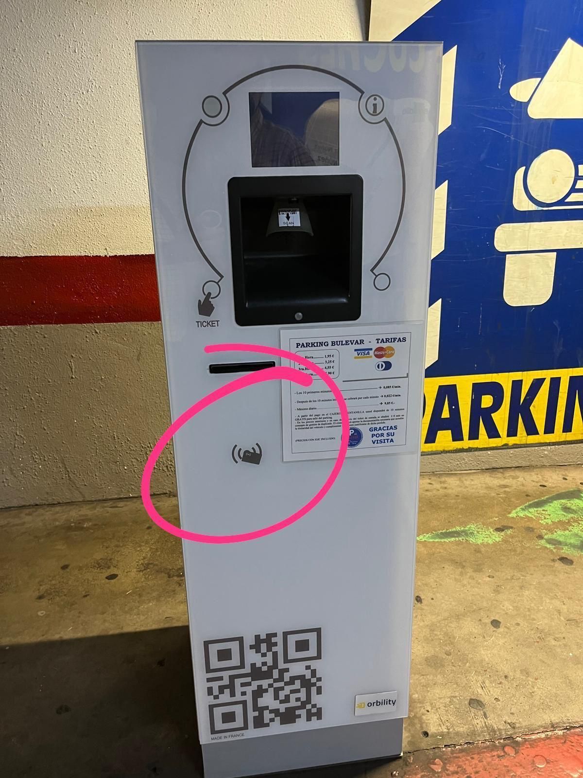 Colocar tarjeta parking donde se indica en la imagen